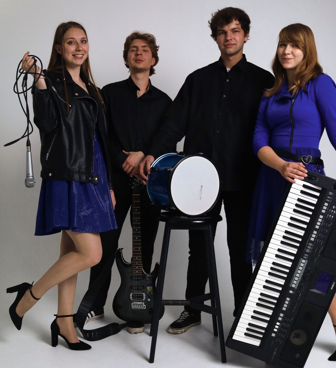 5 музыкантов: вокалистка, гитарист, бас-гитарист, клавишник+бэк-вокалист и ударник создают плотный, качающий живой звук